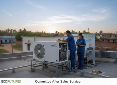 A Heat Pump Water Heater uses air heat to warm water, consuming much less electricity than traditional geysers while delivering continuous hot water.